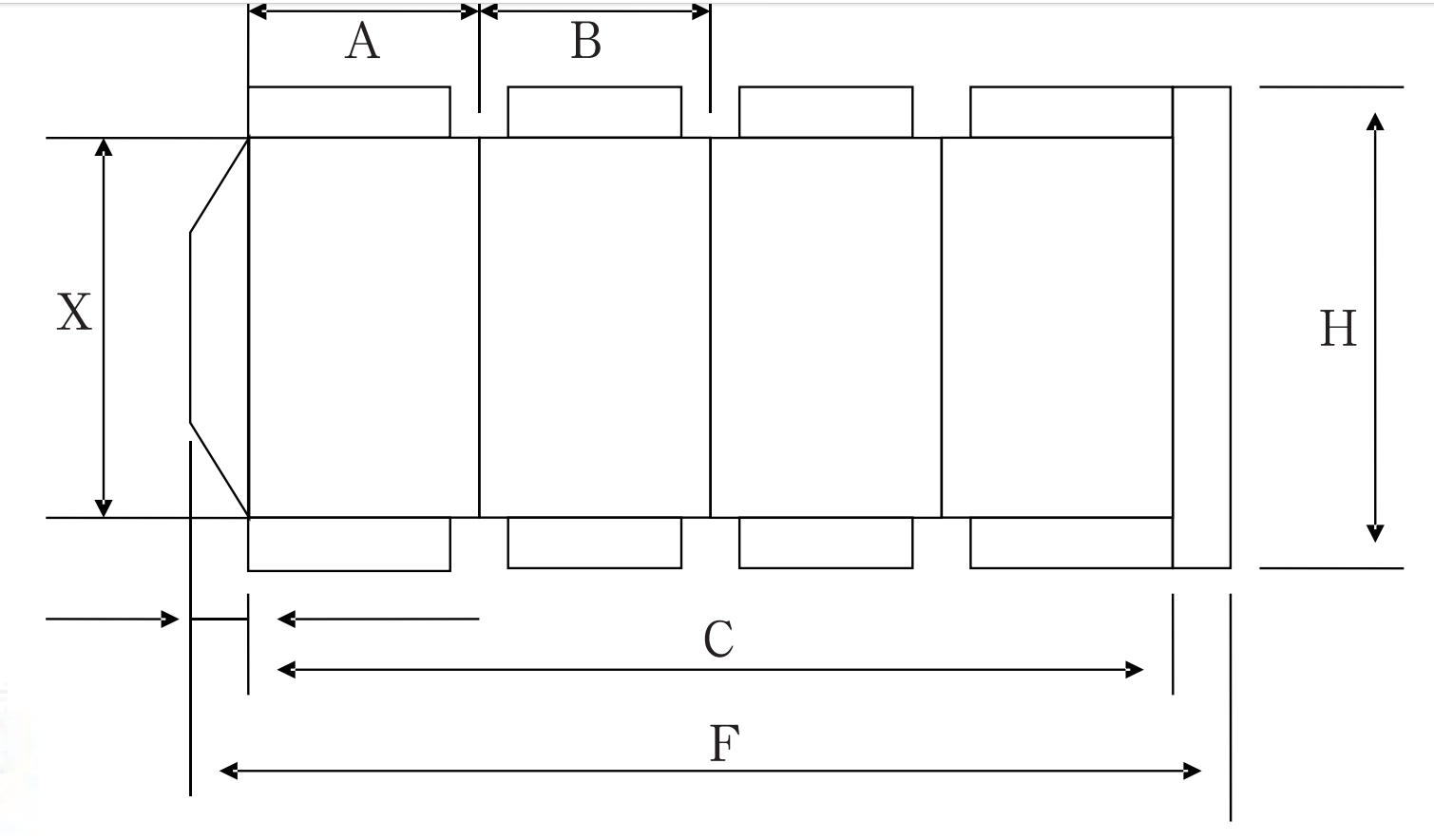 X | Carton height | Min | 80 | 90 | 90 | 120 |